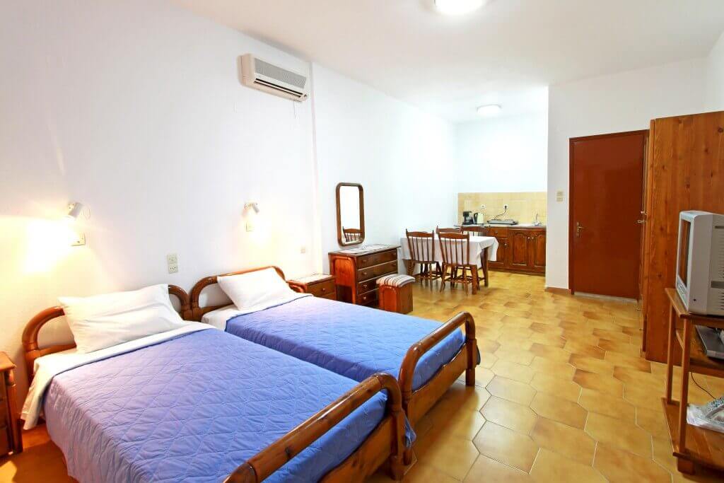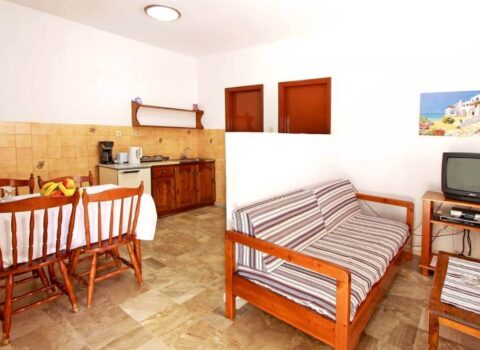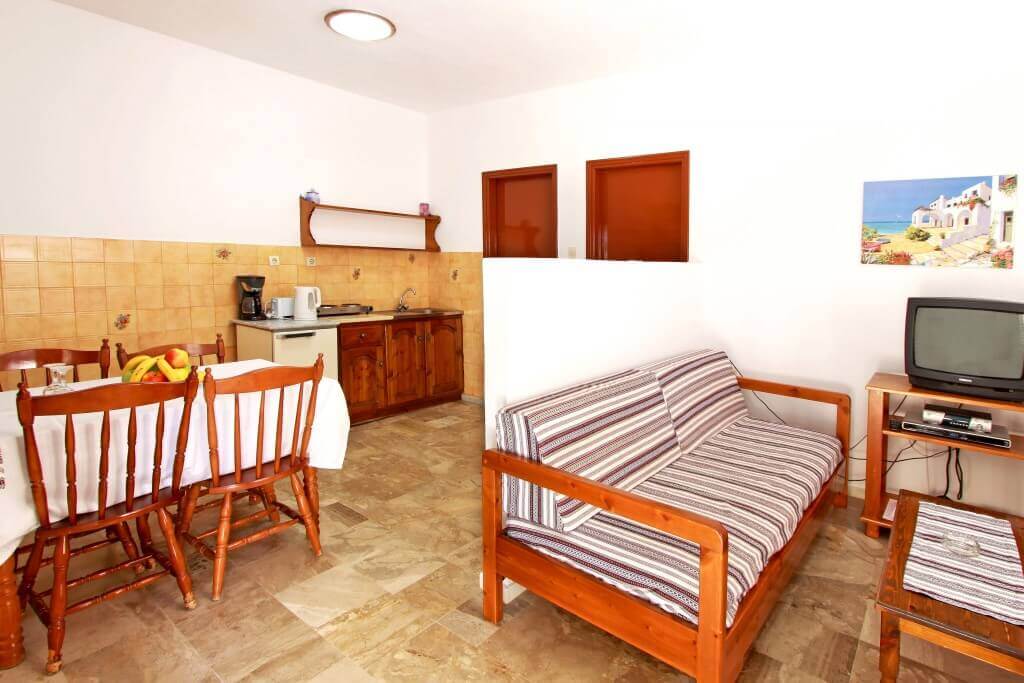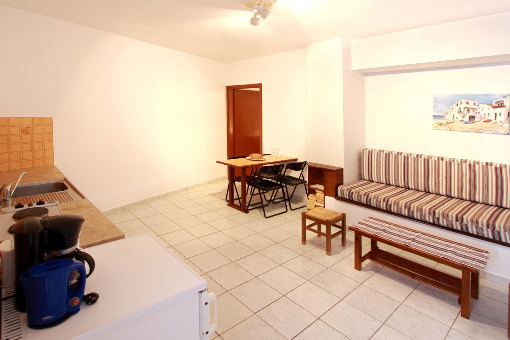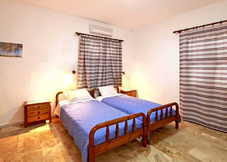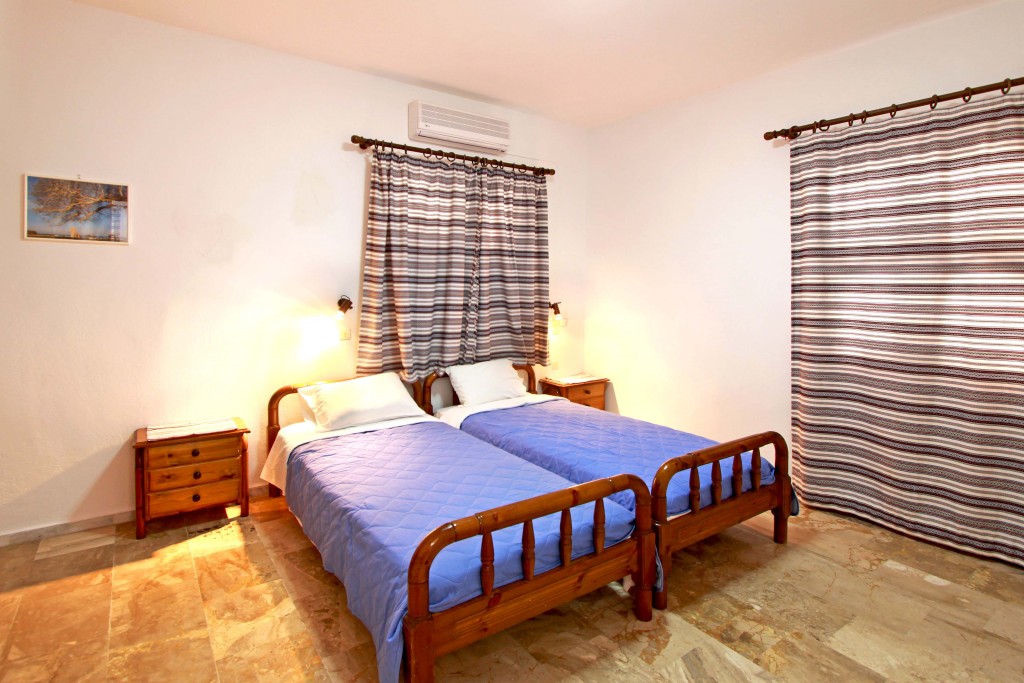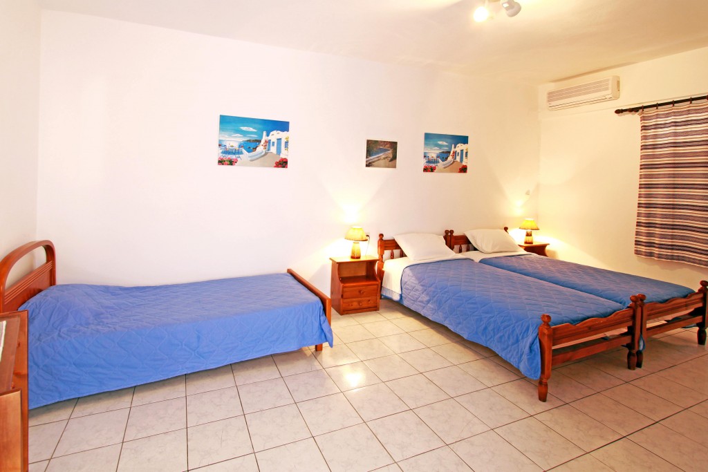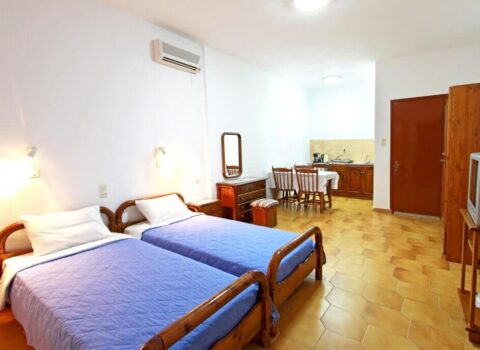 Τρία διαμερίσματα 45-50 τ.μ. επίπεδη επιφάνεια για έως 4 άτομα με 1 υπνοδωμάτιο με κλιματισμό, (ψύξη-θέρμανση), πιστολάκι μαλλιών και θυρίδα ασφαλείας, ενα καθιστικό με δορυφορική τηλεόραση επίπεδης οθόνης – πλήρως εξοπλισμένη κουζίνα με τραπεζαρία, μπάνιο με ντουζιέρα.Διαθέτει μεγάλη βεράντα 50τ.μ. με θέα θάλασσα, 20μ από την παραλία.